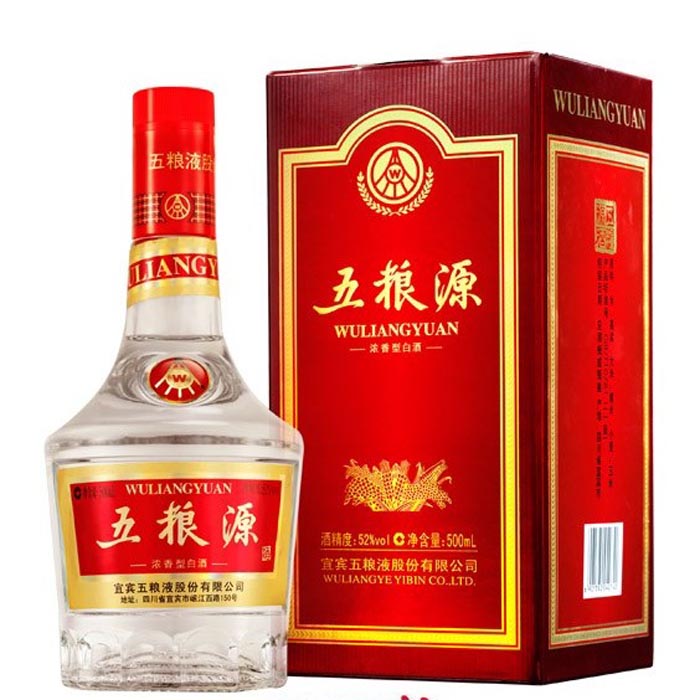52度五粮源:五粮液系列酒之一,浓香型白酒,精选高粱、大米、糯米、小麦、玉米五种原料精制而成。 五粮液独特的生产原料、生产工艺和生态环境,使五粮液酒具有了“香气悠久、味醇厚、入口甘美、入喉净爽、各味谐调、恰到好处、酒味全面”的独特风格,是酒类产品中的经典之作。