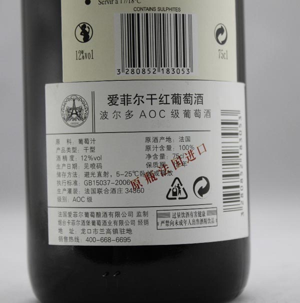 法国爱菲尔干红葡萄酒